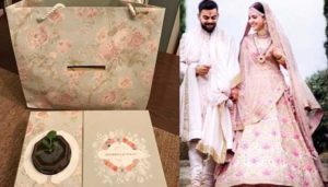 பத்திரிகையுடன் இணைத்து ஒரு மரக்கன்றையும் கொடுத்து வருகிறார்கள். மும்பையில் ஏராளமான பிரபலங்களுக்கு இந்த மாதிரியே அழைப்பிதழை கொடுத்துள்ளனர். இதற்கிடையே, தனக்கு திருமண வாழ்த்து கூறிய கிரிக்கெட் வீரர்கள் அனைவருக்கும் விராட் கோலி, ‘டுவிட்டர்’ மூலம் தனித்தனியே நன்றி தெரிவித்துள்ளார்.