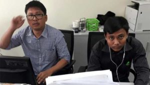 இதற்கிடையே, சட்ட விதிமுறைகளை மீறி செய்தி சேகரித்து அதை வெளிநாட்டுக்கு அனுப்பியதாக ராய்டர்ஸ் நிறுவனத்தில் பணியாற்றும் வா லோன், யாவ் சோய் ஊ என்ற இரு பத்திரிகையாளர்களை யாங்கூன் போலீசார் நேற்று கைது செய்தனர்.அவர்களுக்கு உதவியாக இருந்த ஒரு காவலரும் கைது செய்யப்பட்டுள்ளார் என அந்நாட்டு அரசு தெரிவித்திருந்தது.