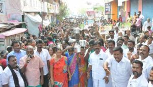 மாரியப்பன் கென்னடி தேர்தல் பொறுப்பாளராக உள்ள வ.உ.சி. நகர் 8 பாகத்துக்குட்பட்ட பகுதிகளில் பெண்களுடன் ஊர்வலமாக சென்று குக்கர் சின்னத்துக்கு ஆதரவு திரட்டினார். அப்போது கட்சிக்கும் அம்மாவுக்கும் விசுவாசமாக திகழ்ந்த அண்ணன் டி.டி.வி. தினகரனுக்கு குக்கர் சின்னத்தில் வாக்களித்து வெற்றி பெற செய்யுங்கள் என்றார். அவருடன் சிவகங்கை மாவட்ட செயலாளர் கே.கே.உமாதேவன், முன்னாள் அமைச்சர் சண்முகவேலு, பெரம்பூர் மாவட்ட செயலாளர் கார்த்திகேயன், வட்ட செயலாளர் முரளி முருகன் ஆகியோர் சென்று வாக்கு சேகரித்தனர்.
