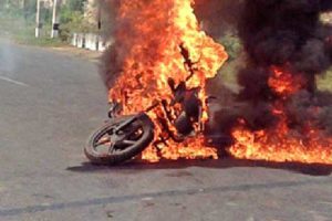 யாழ். அராலி கொட்டைக்காடு வைத்தியசாலைக்கு முன்பாக ஓடிக்கொண்டிருந்த மோட்டார் சைக் கிள் திடீரென தீப்பற்றி எரிந்ததில் இளைஞர் ஒருவர் உடல் கருகி உயிரிழந்துள்ளார்.
