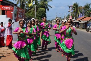 பின்னர் பேராலய மண்டபத்திலிருந்து வீதி வழியாகப் பவனியாக வரும் இவர்களைத் தமிழ்ப் பண்பாட்டு முறைப்படி சிறுமியர் நடனமாடி வரவேற்று பேராலய வாசல்வரை அழைத்துச் சென்றனர்.