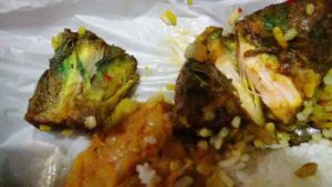 புத்தாண்டு தினமான நேற்று தம்புள்ளை பொருளாதார மத்திய நிலையத்திலுள்ள சிற்றூண்டிச்சாலை ஒன்றில் வழங்கப்பட்ட உணவுப் பொதிகளில் இருந்த கோழி இறைச்சியின் நிறம் பச்சையாக காணப்பட்டுள்ளது.