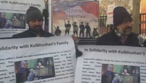குல்பூஷண் ஜாதவை அவரது தாய், மனைவி சந்தித்த விவகாரம் தொடர்பாக அமெரிக்க தலைநகர் வாஷிங்டனில் உள்ள பாகிஸ்தான் தூதரகம் முன் ஏராளமான இந்தியர்கள் கண்டன போராட்டம் நடத்தினர்.
