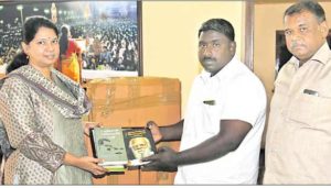 ஆசீர்வாதபுரத்தில் உள்ள டி.டி.டி.ஏ. குருகால்பேரி மேல்நிலைப்பள்ளிக்கூடத்துக்கு தன்னிடம் உள்ள 500 புத்தகங்களை நன்கொடையாக அளித்தார்.