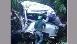 மத்திய அமெரிக்காவின் கவுதமாலா நாட்டில் உள்ள சான் பெரரோ நெக்டா பகுதியில் நேற்று மினி பஸ் சென்று கொண்டிருந்தது. மலைப்பாதையில் திரும்பும் போது டிரைவர் கட்டுப்பாட்டை இழந்ததால் பஸ் பள்ளத்தில் கவிழ்ந்து விபத்துக்குள்ளானது.