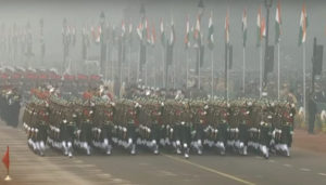 ராஜ்பாத்தில் அமைக்கப்பட்டுள்ள விழா மேடைக்கு தலைவர்களை ஜனாதிபதி மற்றும் பிரதமர் மோடி வரவேற்றனர். தேசிய கொடியை ஜனாதிபதி ஏற்றியதை அடுத்து, முப்படை வீரர்கள் மற்றும் சிறப்புப்படை வீரர்களின் அணிவகுப்பு தொடங்கியது. ராணுவ டாங்கிகள், பிரமோஸ் ஏவுகணை, விமானப்படை மற்றும் கடற்படையில் உள்ள நவீன தளவாடங்கள் அணிவகுத்தன.