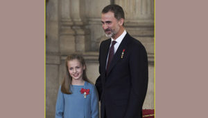 ஸ்பெயின் நாட்டின் இளவரசியாக மன்னர் ஆறாம் ஃபிலிப்பின் 12 வயது மகள் லியோனார் அறிவிக்கப்பட்டுள்ளார். இவர்தான் ஸ்பெயினின் வருங்கால அரசியாவார்.