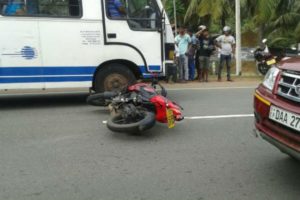 மேற்குறித்த பகுதியில், மோட்டார் சைக்கிள் ஒன்றும் முச்சக்கர வண்டி ஒன்றும் நேருக்கு நேர் மோதியதில், மோட்டார் சைக்கிளில் சென்ற 33 வயதுடைய ந.யோகம்பரநாதன் என்பவரே படுகாயமடைந்தவராவார்.இதேவேளை இவ்வீதி விபத்துக் குறித்து விசாரணைகள் நடைபெறுகிறது.