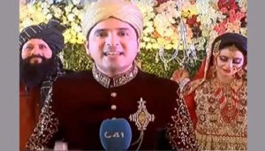 பாகிஸ்தானைச் சேர்ந்த பத்திரிகையாளர் ஒருவர் தனது கல்யாண நிகழ்ச்சியை நேரலையாக தொகுத்து வழங்கிய வீடியோ இணையதளங்களில் வைரலாக பரவி வருகிறது.