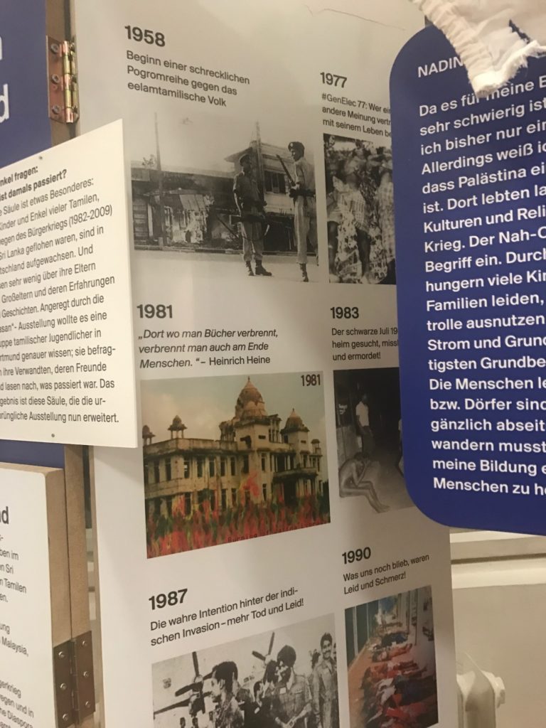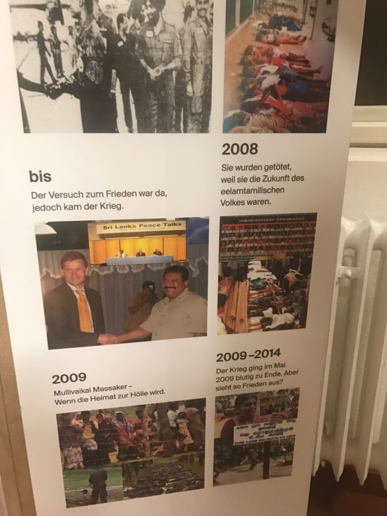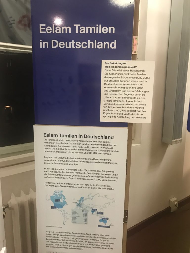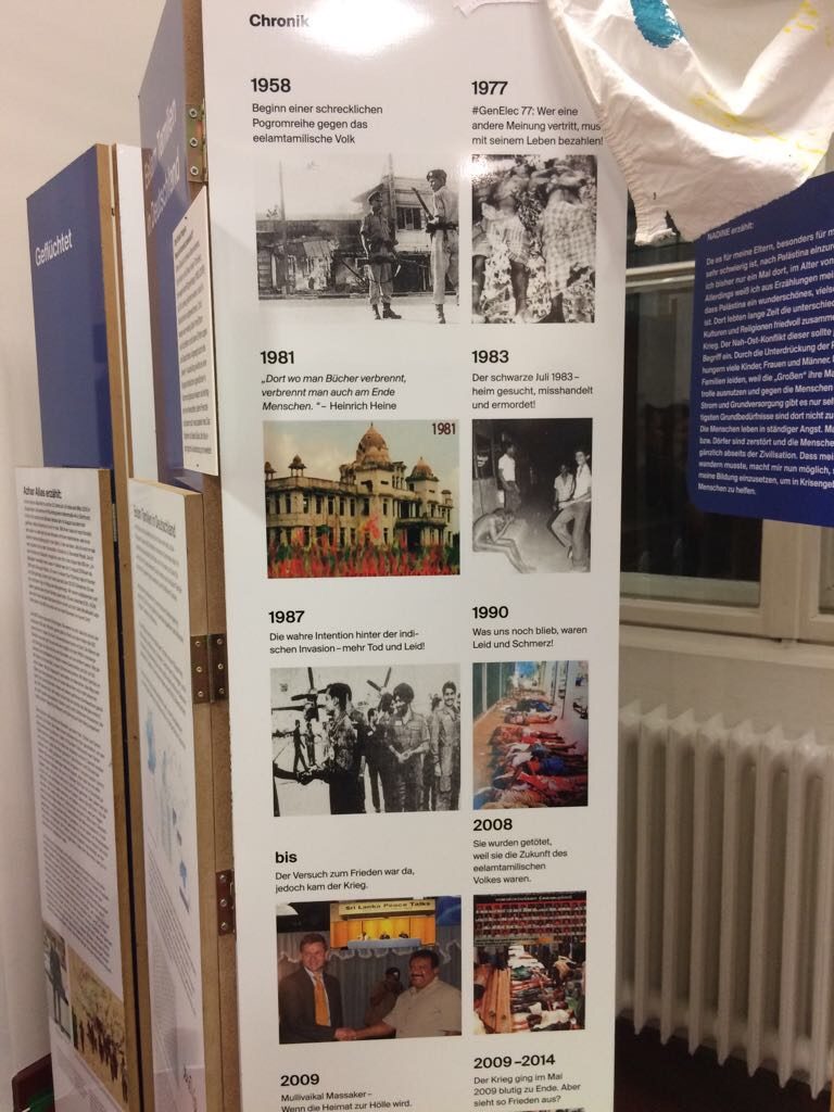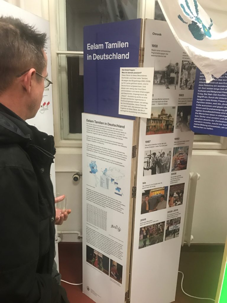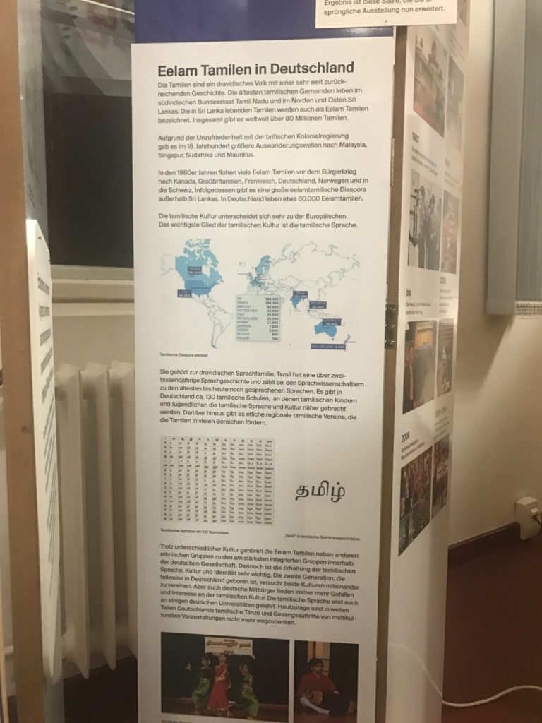 கடந்த இரண்டு மாதங்களுக்கு மேலாக பேர்லினில் உள்ள Pankow மாவட்டத்தின் அருங்காட்சியகத்தில் இக் கண்காட்சி தொடர்ச்சியாக அமையப்பெறுகின்றது. இக் கண்காட்சி மாவட்ட முதல்வர் மதிப்பிற்குரிய திரு Sören Benn அவர்களின் தலைமையில் திறந்து வைக்கப்பட்டது குறிப்பிடத்தக்கது.பல்வேறு அரச சார்பற்ற நிறுவனங்கள் , பல்லின சமூகத்தின் இணைவாக்கத்துக்கான Pankow மாவட்ட அரச அலுவலகம் மற்றும் Bundesverband NeMO அமைப்பும் இணைந்தே இக் கண்காட்சியை முன்னெடுக்கின்றது.
