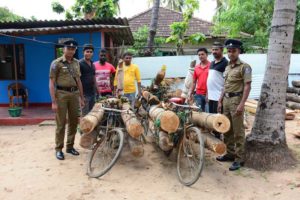 ஆறு துவிச்சக்கர வண்டிகளில் சுமார் ஆறு அடி நீளமுடைய 26 மரக்குற்றிகள் காணப்பட்டன.