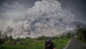 அவ்வகையில் தற்போது சுமத்ரா தீவில் உள்ள சினபங் மலை என்ற எரிமலை தற்போது கடும் சீற்றத்துடன் காணப்படுகிறது. நேற்று முதல் அதிக வெப்பத்துடன் கூடிய சாம்பலை வெளிப்படுத்தி வருகிறது. விண்ணை முட்டும் அளவுக்கு எழுந்துள்ள இந்த புகை மற்றும் சாம்பல் எரிமலையின் சுற்றுப்புற பகுதிகளில் 16 ஆயிரம் அடி தூரம் வரை பரவியுள்ளது. எரிமலையைச் சுற்றி வசிக்கும் பொதுமக்கள் முன்னெச்சரிக்கை நடவடிக்கையாக வெளியேற்றப்பட்டுள்ளனர்.