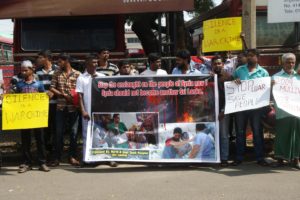 இப்போராட்டம் இன்று காலை யாழ் மத்திய பேருந்து நிலையத்திற்கு முன்பாக இடம்பெற்றது.