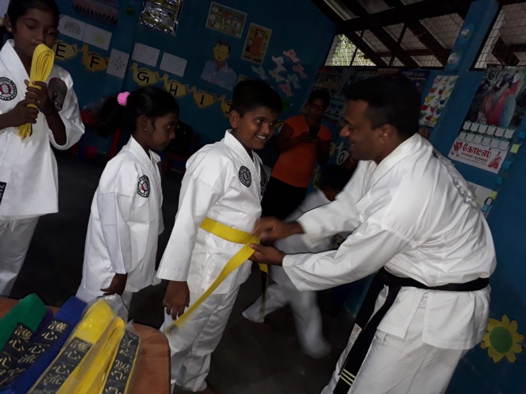 Shi Shi No Dojo – Shito Ryu Karate Do – Berlin சார்பிலும் இப் பள்ளியில் கராத்தே பயிலும் மாணவர்கள் சார்பிலும் , தாயகத்தில் அறிவொளி கல்வி நிலையத்தில் கராத்தே பயிலும் போரினால் பாதிக்கப்பட்ட 30 சிறார்களுக்கு புதிய கராத்தே சீருடை மற்றும் அவர்களின் முதலாவது பரீட்ச்சைக்கான கட்டணத்தையும் அன்பளித்துள்ளார்கள். இவ்வாறான செயற்திட்டங்களின் ஊடாக புலம்பெயர் சிறுவர்கள் தாயகத்தில் உள்ள சிறுவர்களின் மீது கவனத்தை ஏற்படுத்தவும் சமூகத்தில் மேனிதநேயம் மற்றும் நல்லெண்ணம் கொண்டவர்களாக உருவாக்கவும் வழிவகுக்கும் என்பதை ஆழமாக நம்புகின்றோம்.
