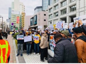டோக்கியோவில் உள்ள ஐக்கிய நாடுகள் சபை காரியாலயத்திற்கு முன்பாக இலங்கையின் தற்போதைய நிலவரத்தை தெரிவிக்கும் வகையில் ஆர்ப்பாட்டமொன்று முன்னெடுக்கப்பட்டுள்ளது.