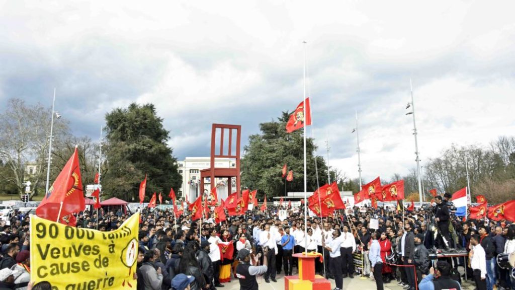 தமிழ் இன அழிப்பிற்கு நீதி கோரி நேற்று ஜெனிவாவில் மாபெரும் போராட்டம் ஒன்று இடம்பெற்றது. ஜெனிவா ரயில் பநிலையத்திற்கு அருகாமையில் உள்ள பூங்காவில் நேற்று பிற்பகல் 2.00 மணியளவில் ஆரம்பமாகிய பேரணி, ஜெனிவா முருகதாசன் திடலில் நிறைவடைந்தது.