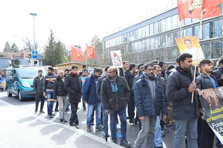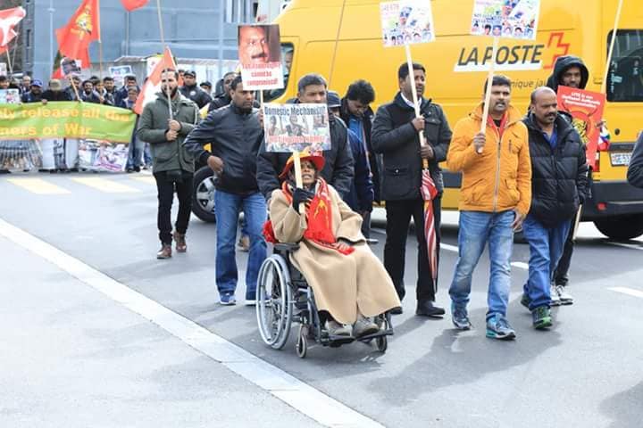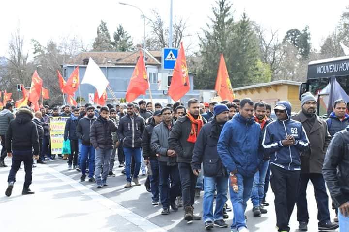 12.03.2018 திங்கட்கிழமை அன்று சுவிஸ் நாட்டின் ஜெனிவா தொடரூந்து நிலையத்திற்கு அருகாமையில் உள்ள பூங்காவில் ஆரம்பிக்கப்பட்ட கவனயீர்ப்பு பேரணியானது உலகத்தமிழர்களின் ஒன்றுபட்ட உரிமைக்குரலாக ஒலிக்க, அவர்கள் தாங்கிய பதாகைகள் மூலம் வேற்றின மக்களுக்கு எடுத்துரைத்து, நகர்ந்து ஈகைப்பேரொளி முருகதாசன் திடலை வந்தடைந்தது.