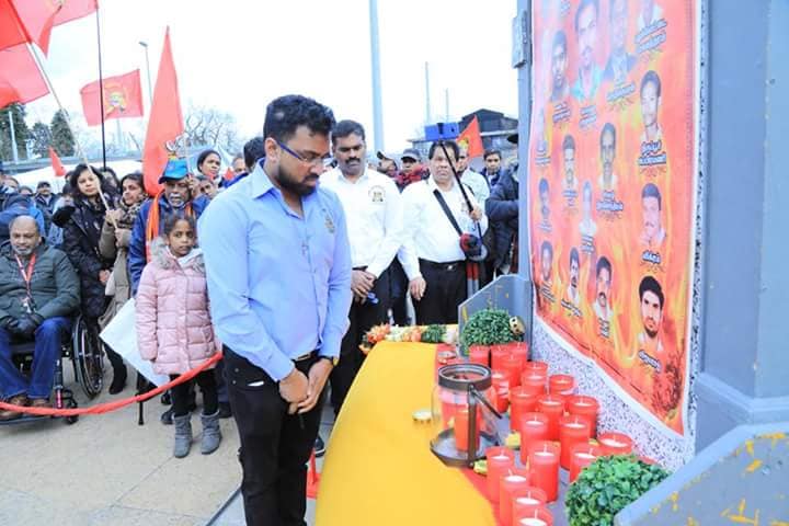 பொதுச்சுடரேற்றலுடன் ஆரம்பமாகிய ஒன்றுகூடலானது தமிழீழத் தேசியக்கொடி வானுயர ஏற்றப்பட்டு ஈழத்தமிழர்களின் விடியலுக்காக தீயினில் தம்மையே ஆகுதியாக்கிய ஈகைப்பேரொளிகளுக்குரிய ஈகைச்சுடர்களும் ஏற்றப்பட்டு மலர்மாலை அணிவித்தலுடன் அகவணக்கம் மலர்வணக்கத்துடன் உறுதிமொழியும் எடுக்கப்பட்டது.