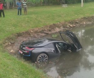BMW i8 ரக மோட்டார் வாகனம் ஒன்றே இவ்வாறு விபத்துக்குள்ளாகியுள்ளது.