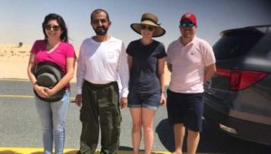 இதனால் பாலைவனத்தில் தவித்துக் கொண்டிருந்தனர். அப்போது துபாய் மன்னர் ஷேக் முகமது பின் ரகித் அல் மக்டோம் தனது குழுவினருடன் அந்த வழியாக காரில் வந்தார். இவர் ஐக்கிய அரபு அமீரகத்தின் துணை தலைவராகவும் இருக்கிறார். அவர் பாலைவனத்தில் தவித்துக் கொண்டிருந்த சுற்றுலா பயணிகளை பார்த்துவிட்டு அவர்களிடம் சென்று விவரம் கேட்டறிந்தார். பின்னர் மணலில் சிக்கிய காரை மீட்டு வெளியே எடுக்கும்படி தனது குழுவினருக்கு உத்தரவிட்டார். அதை தொடர்ந்து அவர்கள் மணலில் சிக்கிய காரை வெளியே மீட்டனர்.