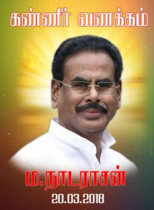 அன்னாரை இழந்து துயரில் வாடும் அரவரது மனைவி திருமதி சசிகலா நடராஜனுக்கும் அவரது குடும்பத்துக்கும் எமது ஆழ்ந்த அனுதாபங்களைத் தெரிவித்துக்கொள்வதோடு அவரின் ஆத்மா சாந்தியடைய வேண்டுகின்றோம்.