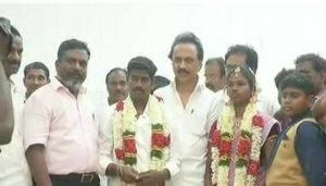 இந்நிலையில், புரசைவாக்கம் மண்டபத்தில் தங்கவைக்கப்பட்டுள்ள ஸ்டாலின் முன்னிலையில், விழுப்புரத்தை சேர்ந்த பாரதிதாசன் – ஸ்ரீமதி ஆகியோரது திருமணம் நடைபெற்றது. மணமக்களை மு.க.ஸ்டாலின், திருநாவுக்கரசர், திருமாவளவன் உள்ளிட்டோர் வாழ்த்தினர்.