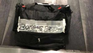 மும்பையில் இருந்து ஆஸ்திரேலியாவுக்கு சென்ற விமானத்தில் பயணி ஒருவர் மறதி காரணமாக பையின் மீது பாம் என எழுதி வைத்திருந்ததால் பெரும் பரபரப்பு ஏற்பட்டது.