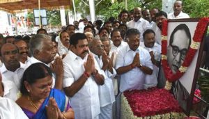 இந்திய அரசியலமைப்புச் சாசனத்தின் தந்தை என போற்றப்படும் டாக்டர். பீமாராவ் அம்பேத்கரின் 127-வது பிறந்தநாள் இன்று நாடு முழுவதும் கொண்டாடப்பட்டு வருகிறது. இந்நிலையில், சென்னை கோடம்பாக்கத்தில் உள்ள அம்பேத்கர் சிலைக்கு முதலமைச்சர் எடப்பாடி பழனிச்சாமி மாலை அணிவித்து மரியாதை செலுத்தினார். அம்பேத்கரின் படத்துக்கு முதலமைச்சர் பழனிச்சாமி, துணை முதலமைச்சர் ஓ.பன்னீர்செல்வம், அமைச்சர்கள் மலர்தூவி மரியாதை செலுத்தினர்.