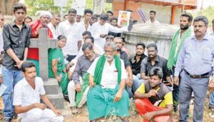 காவிரி மேலாண்மை வாரியம் அமைக்கக்கோரி சேலத்தில் கல்லறையின் மேல் அமர்ந்து தென்னிந்திய நதிகள் இணைப்பு சங்க தலைவர் அய்யாக்கண்ணு நூதன போராட்டத்தில் ஈடுபட்டார்.