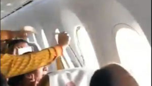 அந்த விமானம் சென்று கொண்டு இருக்கும் போதே, நடுவானில் பெரிய அளவில் சத்தம் கேட்டு இருக்கிறது. இதனால் உள்பக்கம் பெரிய அளவில் பொருட்கள் ஆடி இருக்கிறது. இந்நிலையில், அவ்விமானத்தின் ஜன்னல் பயணிகளின் இருக்கைக்கு மேல் பக்கம் உடைந்து விழுந்து இருக்கிறது. அங்கிருந்த பயணிகளின், தலையில் விழுந்து காயம் ஏற்பட்டுள்ளது. அதே போல் அவசரத்திற்கு கொடுக்கப்படும், ஆக்சிஜன் டியூப்கள் வெளியே வந்துள்ளன.