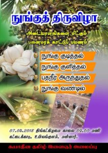 எதிர்வரும் 7 ஆம் திகதி மன்னாரில் நுங்குத் திருவிழா சிறப்பாக இடம்பெறவிருக்கின்றது. அனைவரையும் அன்புடன் அழைக்கின்றார்கள் நிகழ்வு ஏற்பாட்டுக் குழுவினர்…