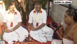நினைவு மண்டபம் கட்டுவதற்கான யாகசாலை பூஜைகள் காலை 6.30 மணி அளவில் நடைபெற்றது. இதில், முதலமைச்சர் பழனிசாமி, துணை முதலமைச்சர் ஓ பன்னீர்செல்வம் ஆகியோர் பங்கேற்றனர். அமைச்சகள் கடம்பூர் ராஜூ, காமராஜ், செங்கோட்டையன், வேலுமணி, சண்முகம், செல்லூர் ராஜு, மாஃபா பாண்டியராஜன் உள்ளிட்டோரும் பங்கேற்றுள்ளனர்.