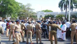 இதன் காரணமாக சென்னை தலைமை செயலகத்தில் பாதுகாப்பு பலப்படுத்தப்பட்டது. தலைமை செயலகத்தில் இருந்து மெரினா கடற்கரை வரையில் 5 ஆயிரத்துக்கும் அதிகமான போலீசார் குவிக்கப்பட்டுள்ளனர்.