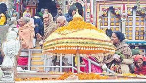 குவாலியர் மகாராணி அஹில்யா பாய் சோல்கர் காணிக்கையாக அளித்த 4 கிலோ எடையுள்ள தங்க குடை பத்ரிநாத்துக்கு கொண்டு வரப்பட்டது.