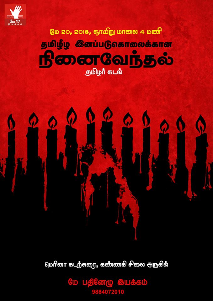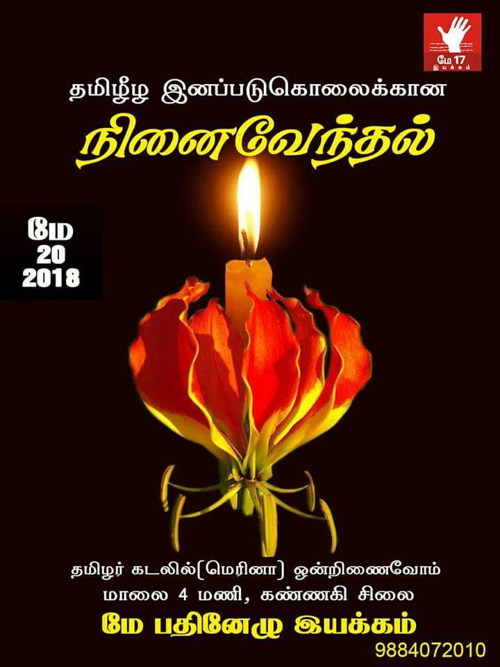 வருகிற மே 20ம் தேதி தமிழர் கடலான சென்னை மெரீனா கடற்கரையில் தமிழீழ இனப்படுகொலைக்கான 9ஆம் ஆண்டு நினைவேந்தல் நிகழ்வு நடைபெற இருக்கிறது.