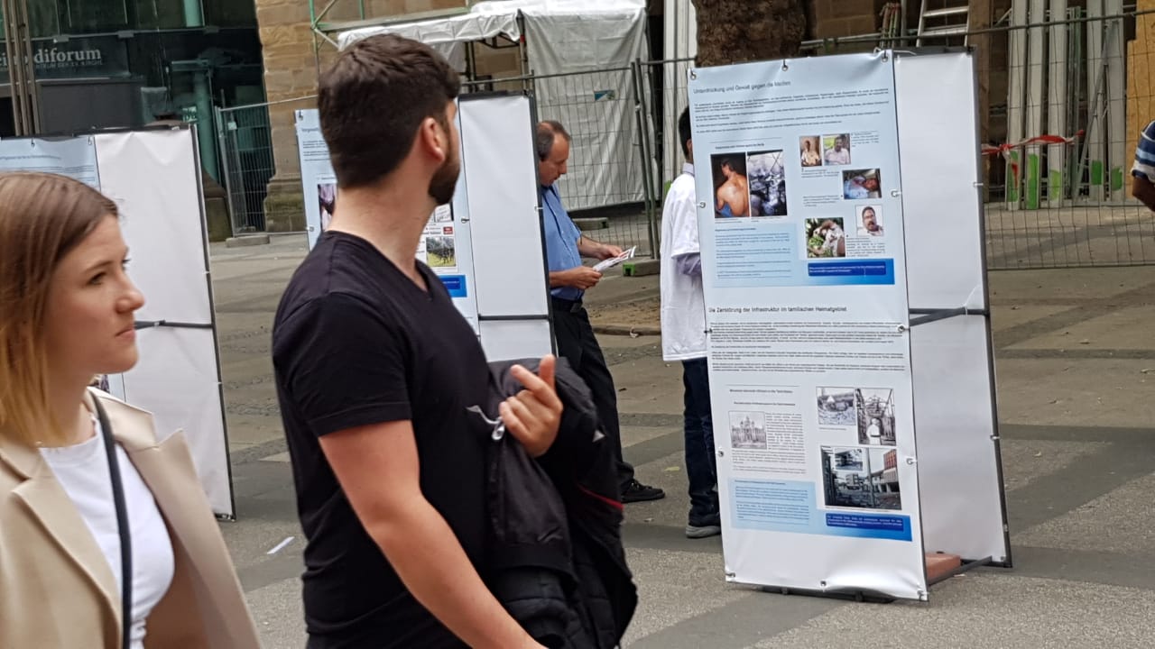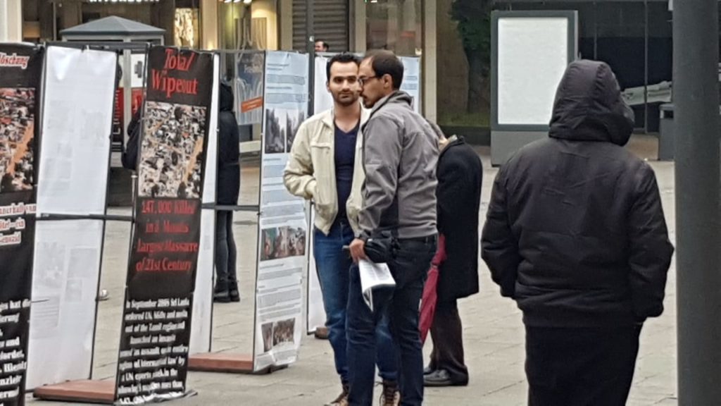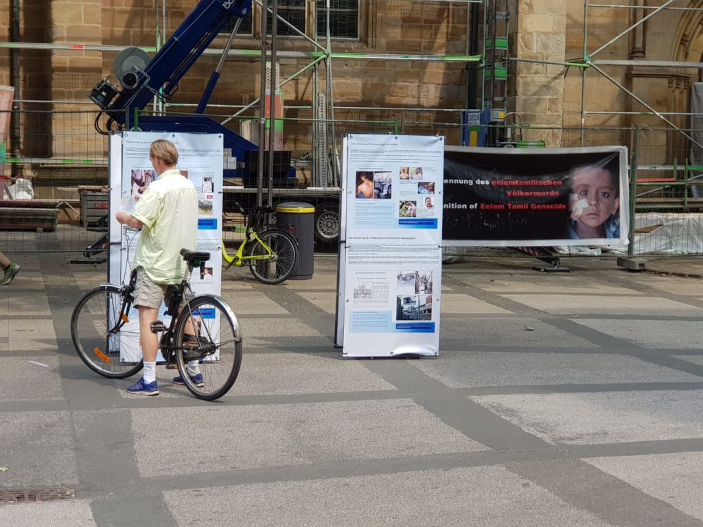 பன்னாட்டு சமூகத்திடம் தமிழின அழிப்புக்கு நீதி கோரி 4 வது நாளாக தொடரும் கவனயீர்ப்பு கண்காட்சி இன்று காலை டோர்ட்முண்ட் நகரிலும் மாலை எஸ்சென் நகரிலும் மக்கள் நடமாடும் பிரதான சாலைகளில் பார்வைக்கு வைக்கப்பட்டது.இக் கண்காட்சி நிகழ்வில் வேற்றின மக்களுக்கு ஆங்கிலத்திலும் , யேர்மன் மொழியிலும் துண்டுப்பிரசுரம் வழங்கப்பட்டு விளக்கங்கள் கொடுக்கப்பட்டது.இவ் நிகழ்வுக்கு ஆதரவாக குறிப்பிட்ட நகர மக்களுக்கும் ஒன்றுகூடியிருந்தனர்.