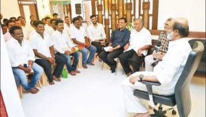 தேனி மாவட்ட இளைஞர் அணி செயலாளர் கணேஷ் கூறும்போது, “கூட்டத்தில், ஸ்டெர்லைட் பிரச்சினை, நியூட்ரினோ பிரச்சினைகள் குறித்து கூறினோம். அதனை காலப்போக்கில் பார்த்துக் கொள்ளலாம். இப்போதைக்கு கட்டமைப்பை ஏற்படுத்துங்கள், இளைஞர்களை அதிகப்படுத்துங்கள், வலுப்படுத்துங்கள் என்று அறிவுறுத்தி உள்ளார்” என்று கூறினார்.