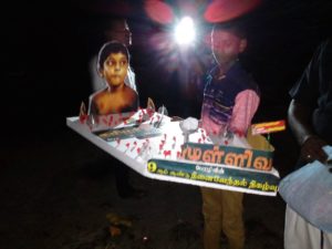 தேசியத்தலைவர் வேலுப்பிள்ளை பிரபாகரனின் மகன் பாலச்சந்திரனின் ஒளிப்படத்தை படகு வடிவில் அமைத்து, அதனை இராமேஸ்வரம் அக்னி தீர்த்தக் கடலில் சுடரேற்றி முள்ளிவாய்க்கால் நோக்கி மிதக்க விட்டுள்ளனர்.
