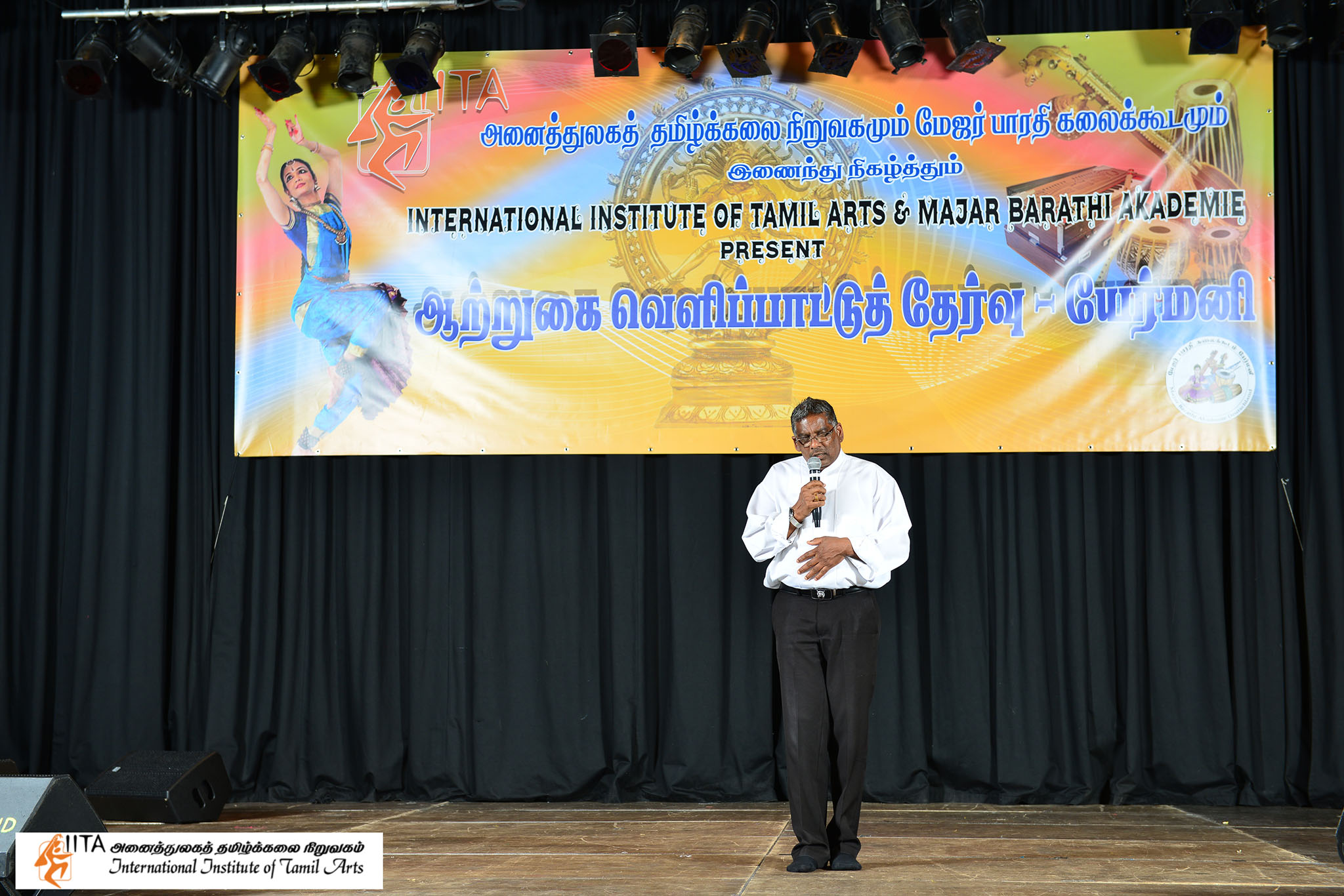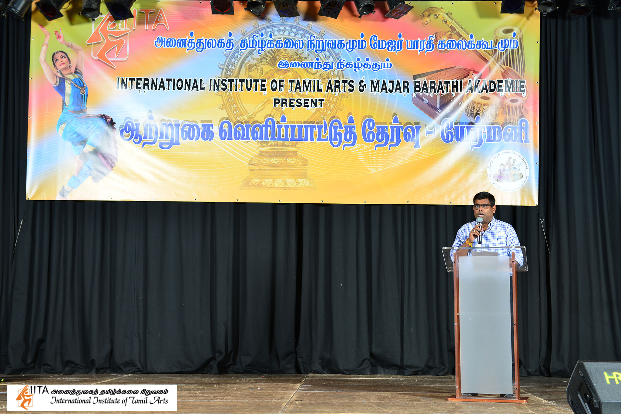 சுவிசில் இருந்து வருகைதந்த அனைத்துலகத் தமிழ்க்கலை நிறுவகத்தின் தேர்வுப் பொறுப்பாளர் நாகராஜா விஐயகுமார் உரை நிகழ்த்தும் போது இன்று ஆற்றுகைத்தரத்திற்கு தோற்றுகின்ற மாணவர்கள் அனைவருக்கும் வாழ்த்துக்களை தெரிவித்ததுடன் இம் மாணவர்களை உருவாக்கிய கலை ஆசிரியர்கள் மற்றும் முழுமையான ஒத்துழைப்புக்களை வழங்கிய பெற்றோருக்கும் நன்றிகளையும் வாழ்த்துக்களையும் தெரிவித்திருந்தார்.