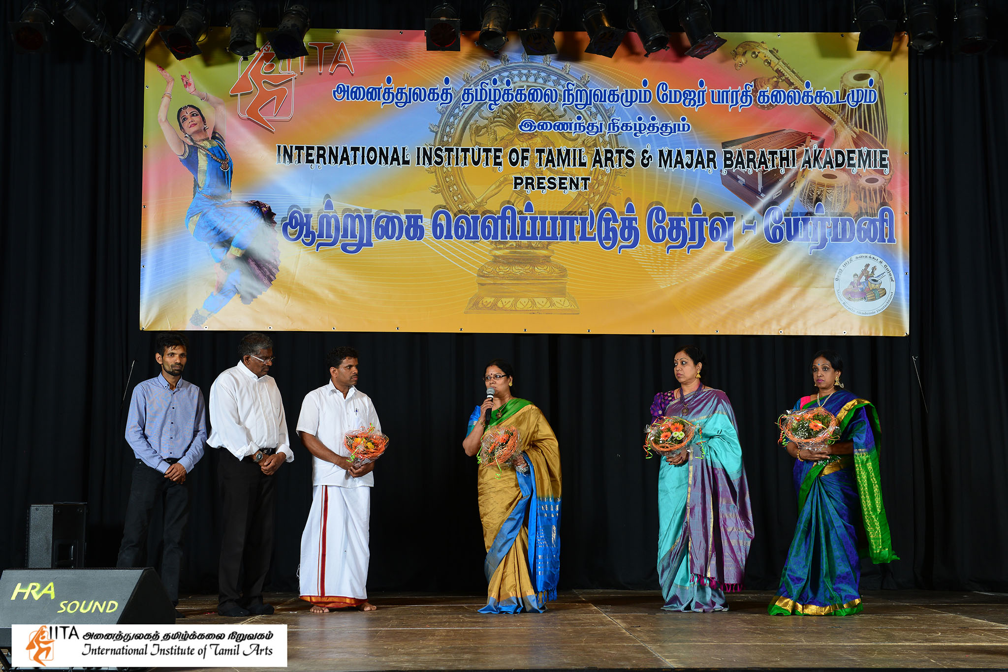 அனைத்துலகத் தழிழ்க்கலை நிறுவகம் ஆரம்பிக்கப்பட்ட காலத்திலிருந்து இன்றுதான் ஆண் மாணவன் ஒருவர் ஆற்றுகை வெளிப்பாட்டுத் தேர்விற்கு முதல் தடவையாக தோற்றுவது சிறப்பான விடயம் எனவும் ஆற்றுகைத்தரத்திற்கு தோற்றிய, தோற்றுகின்ற மாணவர்கள் சக மாணவர்களின் ஆற்றுகை வெளிப்பாட்டுத் தேர்விற்கு நட்டுவாங்கம் செய்யும் ஆளுமையினையும் மனத்தைரியத்தினையும் பாராட்டுவதாகவும் பக்கவாத்தியக் கலைஞர்கள் மிகச்சிறப்பாக தங்கள் பங்களிப்புக்களை வழங்கியிருப்பதாகவும் தெரிவித்தார்.