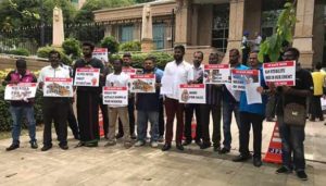 இதனிடையே மோடியின் வருகை குறித்து அறிந்த மலேசிய வாழ் தமிழ்மக்கள், ஸ்டெர்லைட் பிரச்னையை சுட்டிக்காட்டி ஆர்ப்பாட்டம் நடத்தினர். அப்போது ஸ்டெர்லைட்டை தடை செய், தமிழர்களை கொல்லாதே, தமிழ் மண்ணை சிதைக்காதே, மோடி எங்கள் எதிரி என்பது உள்ளிட்ட பதாகைகளை ஏந்தி கரகோஷம் எழுப்பினர்.