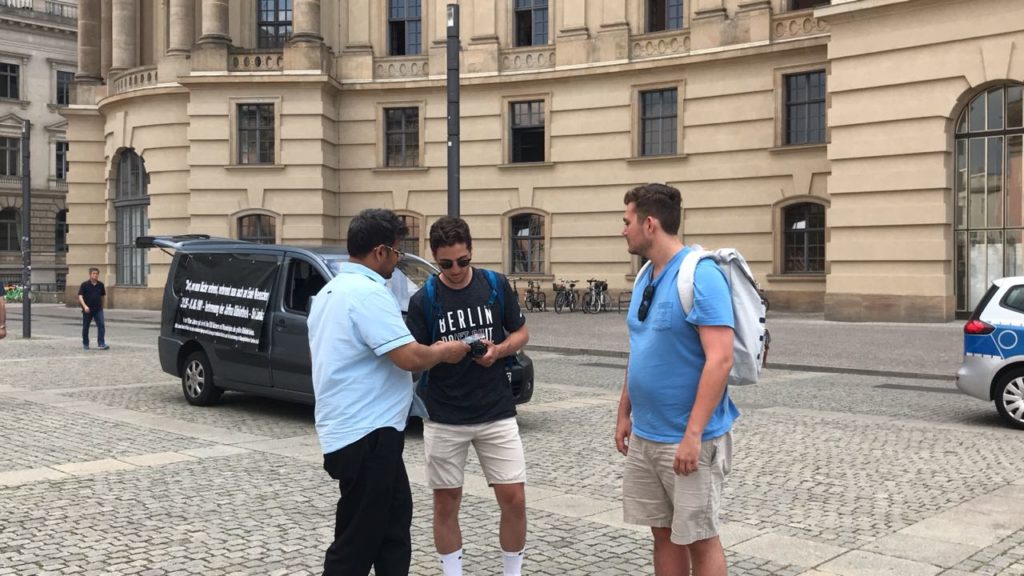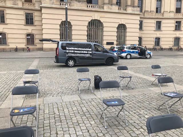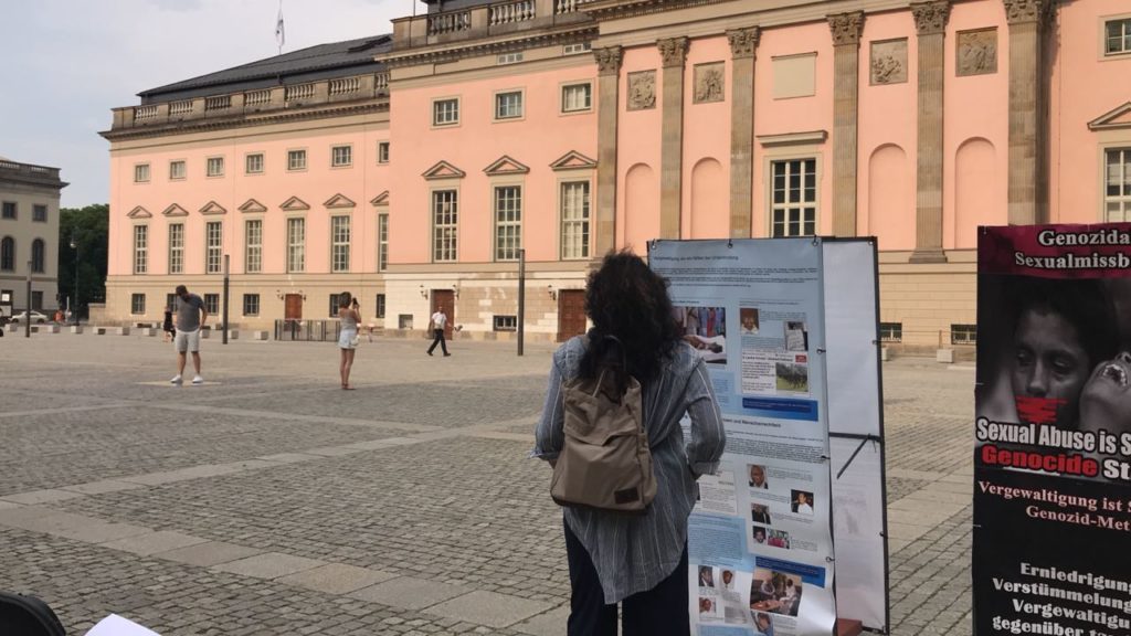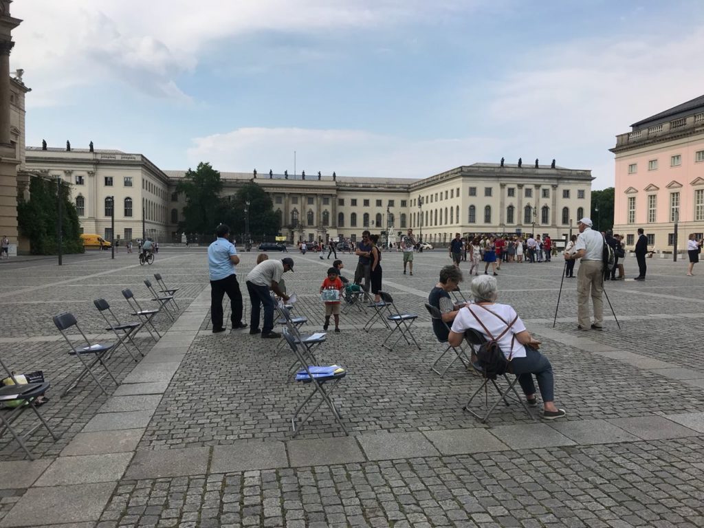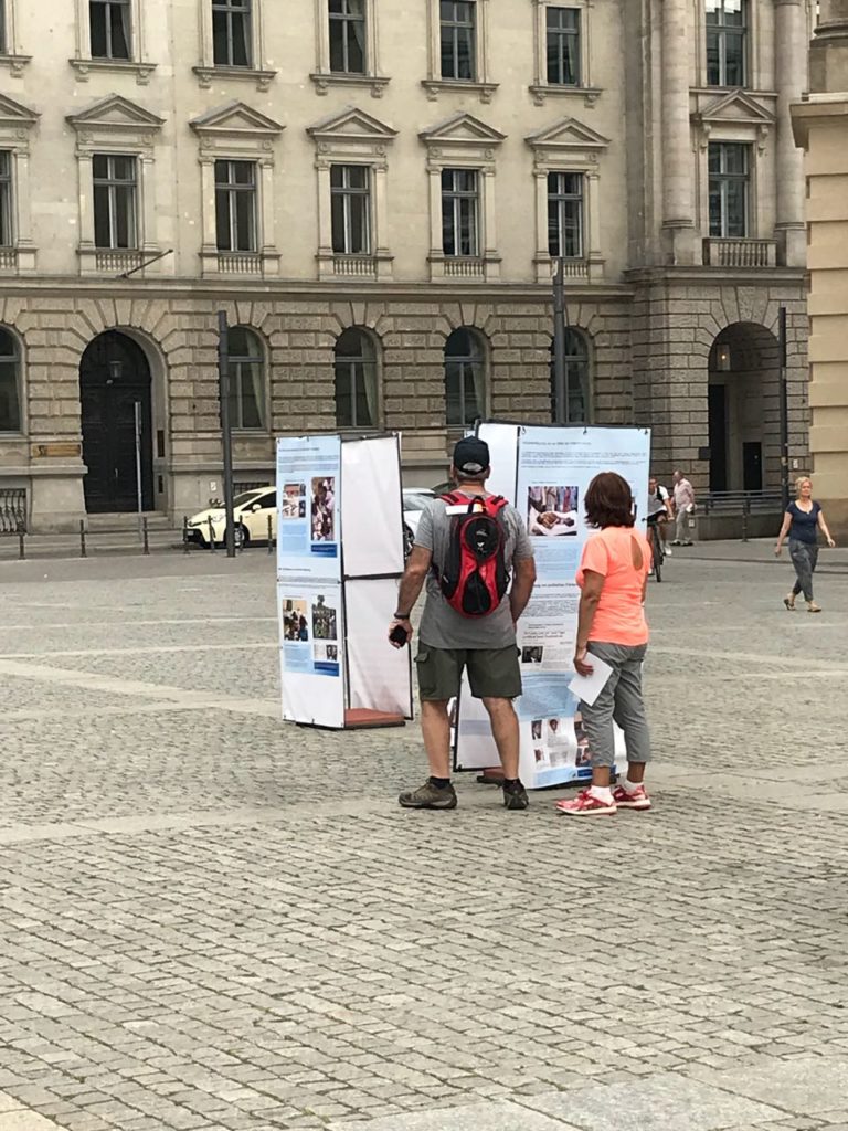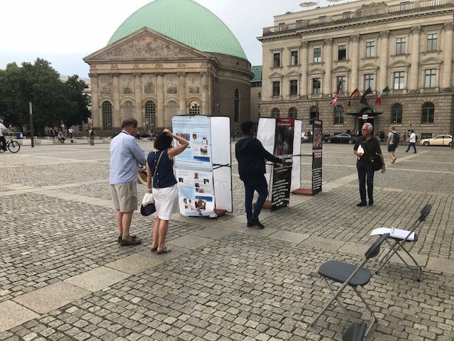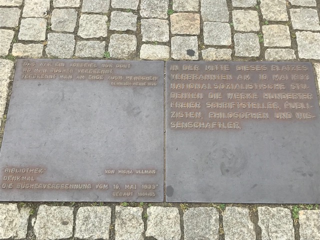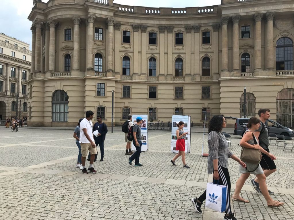 யூதர்களின் மீது இன அழிப்பை மேற்கொண்டபோது ஹிட்லர் தனது நாசிப் படைகளை ஏவி யூதர்களின் படைப்புகளைத் தேடித் தேடி அழித்த வரலாற்று நினைவிடத்தில் (Bebelplatz) சென்ற வெள்ளிக்கிழமை சிங்கள பேரினவாத அரசு மேற்கொண்ட இனவழிப்பில் முக்கிய நிகழ்வான யாழ் பொது நூலக எரிப்பின் 37 வது ஆண்டு நினைவேந்தலாக கவனயீர்ப்பு கண்காட்சி நடைபெற்றது.