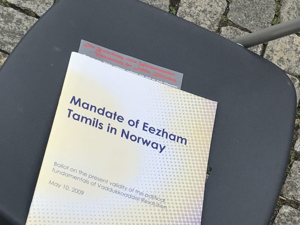 எங்கு நூல்கள் எரிக்கப்படுகின்றனையோ அங்கு மனிதர்களும் எரிக்கப்படுவார்கள் எனும் Heinrich Heine மேதையின் கருத்துக்கு அமைய எரிக்கப்பட்ட நூல்களின் அடையாளமாக ஈழத்தமிழர்களின் இனவழிப்பு விடையங்களை உள்ளடங்கிய நூல்கள் கண்காட்சியாக பார்வைக்கு வைக்கப்பட்டு துண்டுப்பிரசுரம் விநியோகித்து பல்லின மக்களுக்கு விளக்கங்கள் கொடுக்கப்பட்டது.