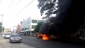 உடனே பேராசிரியை சித்ரா, டிரைவர் கிருபா காரில் இருந்து கீழே இறங்கினார்கள். சிறிது நேரத்தில் கார் திடீரென தீப்பிடித்து எரிந்தது. தீ மளமளவென்று கார் முழுவதும் பரவி கொளுந்துவிட்டு எரிந்தது.