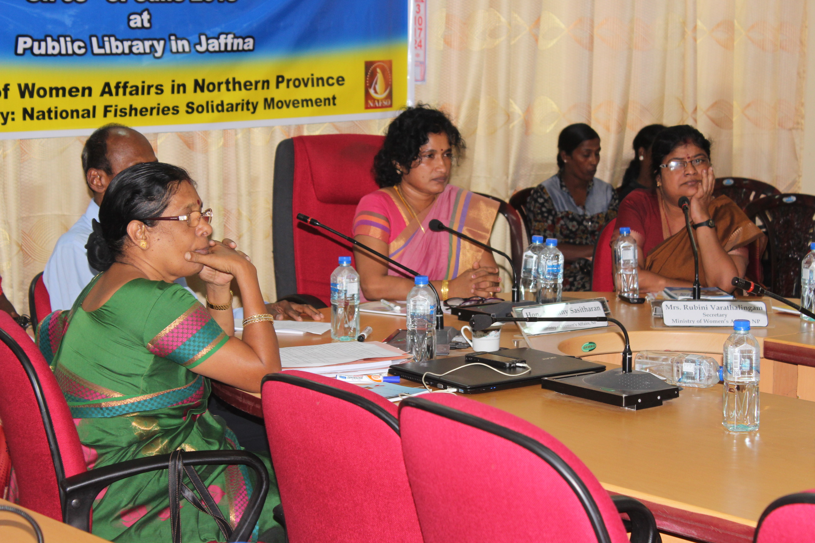 யாழ் பொது நூலக மாநாட்டு மண்டபத்தில் கடந்த வெள்ளிக்கிழமை இடம்பெற்ற இந் நிகழ்வில் மகளிர் விவகார அமைச்சின் செயலாளாளர் திருமதி ரூபினி வரதலிங்கம், தேசிய மீனவ ஒத்துழைப்ப இயக்கத்தின் தேசிய அமைப்பாளர் ஹேர்மன் குமார, மகளிர் விவகார இராஐhங்க அமைச்சின் முன்னாள் செயலாளர் திருமதி இமெல்டா சுகுமார், பேராசிரியர் வி.ரி சிவநாதன், கலாநிதி.விஐயலக்சுமி இராசநாயகம், அமைச்சின் திணைக்களப் பணிப்பாளர்கள் மற்றும் உத்தியோகத்தர்கள், மாவட்ட மட்டத்தில் தேர்ந்தெடுக்கப்பட்ட பெண் தலைவிகள், சிவில் அமைப்புக்களின் பிரதிநிதிகள், இத் துறை சார்ந்து நிபுணத்துவம் சார்ந்தவர்கள் எனப் பலர் கலந்து கொண்டமை குறிப்பிடத்தக்கதாகும்.