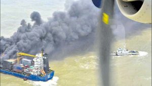 இதனால் அதிர்ச்சி அடைந்த அந்த கப்பலில் இருந்த ஊழியர்கள், கடற்படை அதிகாரிகளிடம் உதவி கேட்டனர். இதையடுத்து கடற்படை கப்பல் மற்றும் சரக்கு விமானத்தில் வீரர்கள் சரக்கு கப்பல் இருந்த இடத்துக்கு விரைந்து சென்றனர். பலத்த காற்று மற்றும் மோசமான தட்பவெப்பநிலை காரணமாக மீட்பு பணியில் சிரமம் ஏற்பட்டது.