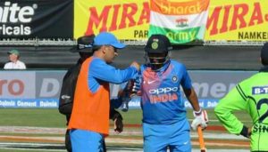 நேற்றைய போட்டியில் இந்திய அணியில் முன்னாள் கேப்டனான டோனி விளையாடவில்லை. அவருக்கு ஓய்வு அளிக்கப்பட்டிருந்தது. இதனால் இந்த போட்டியில் விளையாடாத டோனி, இந்திய அணி பேட்டிங் பிடித்து கொண்டிருந்தபோது, பேட்ஸ்மேன்களின் கிட்பேக் சுமந்தபடி மைதானத்திற்குள் வந்தார். அதோடு பேட்ஸ்மேன்களுக்கு தண்ணீரும் கொண்டு வந்தார். பொதுவாக அணியின் புதிதாக இடம்பிடித்தவர்களே இந்த வேலையை செய்வார்கள்.