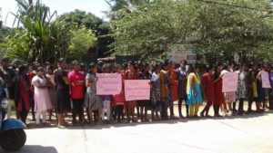 இவ் ஆர்ப்பாட்டத்தில கலந்து கொண்டவர்கள் ரெஜினாவின் கொலைக்கு நீதி வேண்டும் அரசே குற்றவாளிகளை உடன் தண்டிக்கவும் நல்லாட்சி அரசில் சிறுவர் படுகொலைகள் போன்ற வாசகங்கள் எழுதிய பதாதைகளை ஏந்தியவாறு கோஷங்களை எழுப்பினர்.