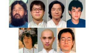 ஜப்பான் நாட்டில் சுரங்கப்பாதை ஒன்றில் நச்சு வாயு தாக்குதல் நடத்தி, 13 பேரை கொன்று குவித்த சாமியார் உள்ளிட்ட 7 பேர் ஒரே நாளில் தூக்கில் போடப்பட்டனர்.