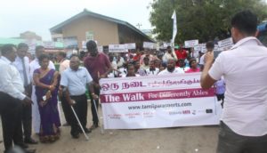 தமிழ் மாற்றுத்திறனாளிகள் விளையாட்டு விழாவை முன்னிட்டு மாற்றுத்திறனாளிகளோடு நடைபவனி ஒன்று நேற்று யாழ்ப்பாணம், மட்டக்களப்பு, லண்டன் ஆகிய இடங்களில் நடைபெற்றது.